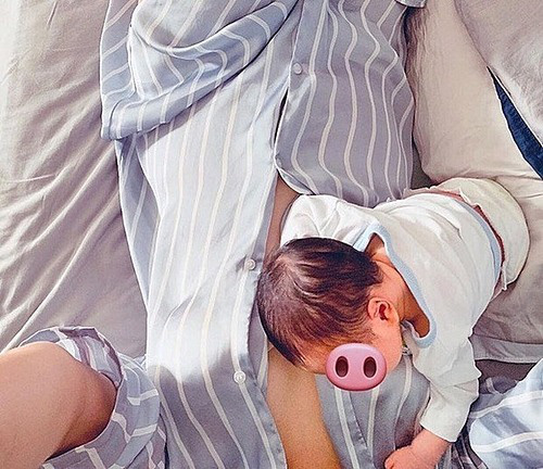 Lan Khuê cho biết nuôi con bằng sữa mẹ. Vợ chồng cô hàng ngày bận rộn chăm sóc bé. "Tôi được chồng, gia đình hỗ trợ rất nhiều nên không vất vả trong việc chăm con. Tôi cũng nhờ thêm các dịch vụ chuyên về chăm sóc sức khỏe cho mẹ và trẻ để thuận tiện hơn", Lan Khuê nói.