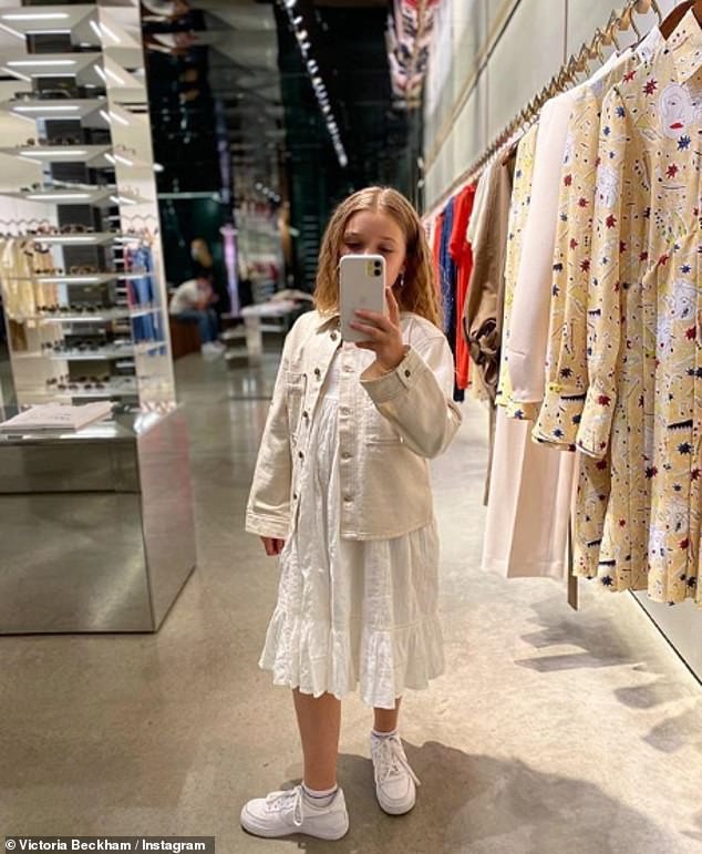 Được biết, bức ảnh trên được chụp khi Harper đi mua sắm cùng anh trai Brooklyn Beckham và chị dâu tương lai- nữ diễn viên Nicola Peltz ở London (Anh).