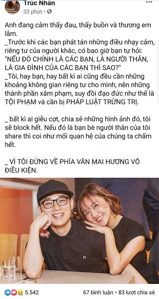 29/12/2019 00:45Cộng đồng mạng và hàng loạt sao Việt lên án gay gắt hành vi đăng tải và phát tán clip nhạy cảm của Văn Mai Hương, kêu gọi tẩy chay link xấu