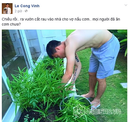 Công Vinh mới đây gây "sốt" với công chúng khi khoe hình ảnh đời thường cùng lời bày tỏ: "Chiều rồi, ra vườn cắt rau vào nhà cho vợ nấu cơm. Mọi người đã ăn cơm chưa?".