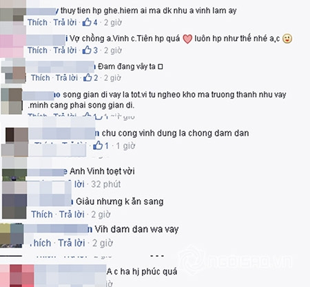 Ngay sau khi đăng tải, bức ảnh ngay lập tức nhận được hàng chục ngàn like lẫn bình luận. Hầu hết mọi người đều khen ngợi hành động của Công Vinh và trầm trồ về gia đình anh. Họ bình luận: "Vợ chồng anh Vinh và chị Tiên hạnh phúc quá. Luôn như thế nhé anh"; "Đảm đang vậy ta"; "Sống giản dị vậy là tốt. Vì từ nghèo khó mà trưởng thành như vậy, mình càng phải sống giản dị"; "Thế mới gọi là gia đình hạnh phúc"...