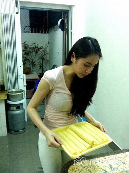 Thủy Tiên trước đây từng khoe những hình ảnh đảm đang vào bếp khiến nhiều ngườicho rằng cô rất giỏi tề gia nội trợ. |