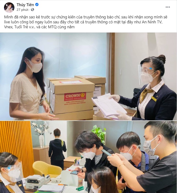Trong khi đó, bà xã của anh cũng có động thái tương tự. Cô đăng ảnh đến ngân hàng và thông báo: "Mình đã nhận sao kê trước sự chứng kiến của truyền thông báo chí, sau khi nhận xong mình sẽ live luôn công bố ngay luôn sau đây cho tất cả truyền thông có mặt tại đây và các MTQ cùng nắm".