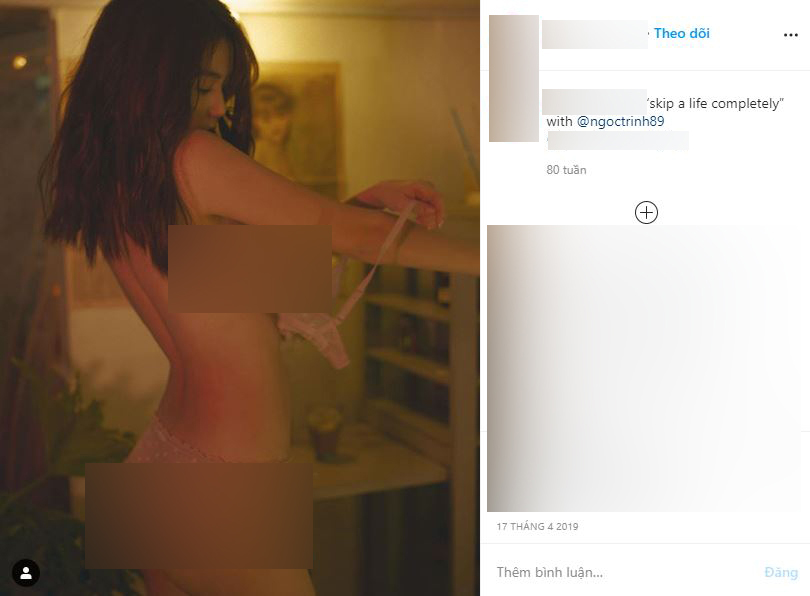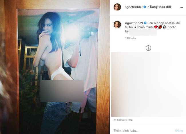 Bên cạnh đó, trên bức ảnh này Ngọc Trinh còn "tag" người thực hiện bộ ảnh cho cô. Lần theo trang cá nhân của nhiếp ảnh gia này người ta dễ dàng tìm thấy những tấm hình còn lại trong bộ ảnh mà người này đăng tải.