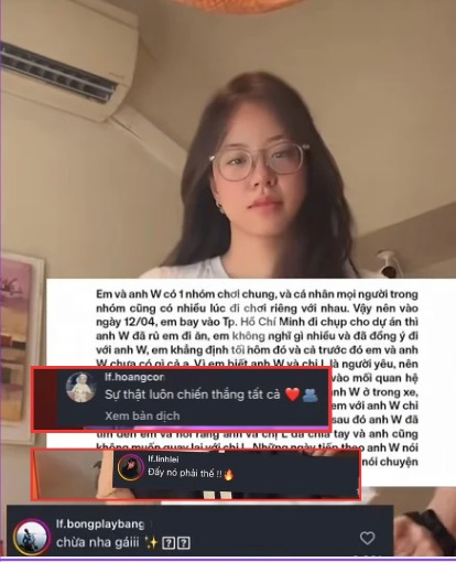 Mọi việc chỉ vỡ lở khi Lim Feng công khai một bức tâm thư dài 6 trang, tiết lộ những góc khuất trong chuyện tình yêu kéo dài hơn 4 năm rưỡi với Wren, đồng thời bày tỏ sự cảm thông với Mi Nga - người mà cô từng xem là “fan”.