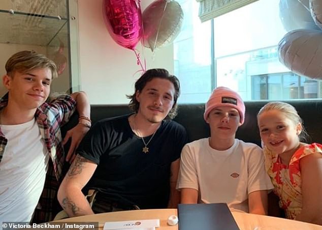 Trong những bức hình được Victoria Beckham đăng tải trên trang cá nhân, có thể thấy Brooklyn rất vui vẻ khi tạo dáng cùng gia đình và các em. Bên cạnh đó, cựu thành viên Spice Girls cũng không quên tag tên cậu con trai lớn vào bức hình cùng dòng nhắn: "Bữa tiệc sinh nhật 8 tuổi của Harper bên các anh trai lớn."
