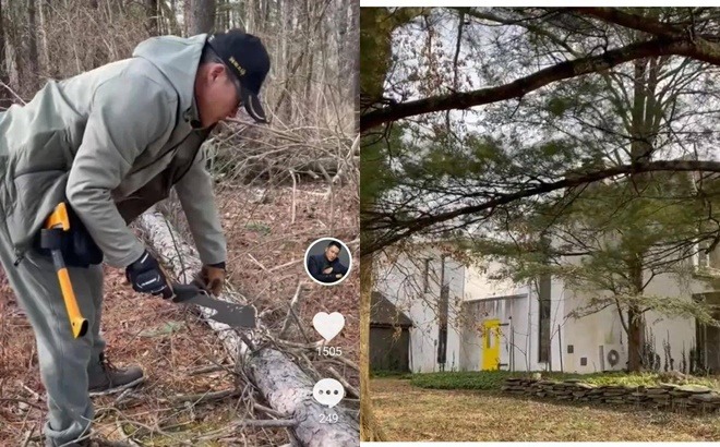 Qua clip Đinh Hải Phong đăng trên mạng xã hội, có thể thấy anh và người thân sở hữu một căn biệt thự rộng rãi, ấm cúng ở vùng nông thôn nước Mỹ, bên cạnh là khu rừng nhỏ, nơi nam diễn viên thường đốn củi để nhóm lò sưởi ấm.