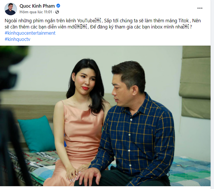Trang Facebook cá nhân, Kinh Quốc cũng chọn cách tạm dừng cập nhật thông tin, hình ảnh để tránh những luồng ý kiến trái chiều từ dư luận. Dù vướng phải ồn ào, tuy nhiên về công việc cá nhân, Kinh Quốc vẫn duy trì đều đặn.