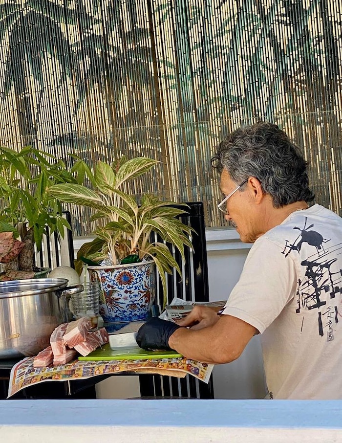 Bên cạnh đó, Hương Lan cũng thường chia sẻ các món ăn “quê hương” do chính bà tự làm như: mắm chưng thịt, canh, rau xào…. Đôi lúc, nữ nghệ sĩ còn chu đáo vào bếp nấu nhiều món ăn dành tặng cho bạn bè thân thiết. Trên trang cá nhân, bà viết: “Mấy khay mắm chưng vừa mới chuyến đến hội chị em bạn dì. Ăn chưa hết đã í ới thèm món rau mắm của mình. Ngon là nhờ anh hai xắt thịt và cắt rau phụ cho vợ. Đồng vợ đồng chồng, thế mới vui”.