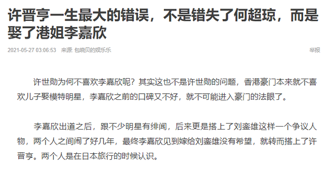 Tuy nhiên theo trang NetEase thì cuộc sống hào môn của Lý Gia Hân không hề tốt đẹp như mọi người vẫn nghĩ khi nàng "Hoa hậu đẹp nhất Hong Kong" bị gia đình chồng coi thường suốt nhiều năm qua.