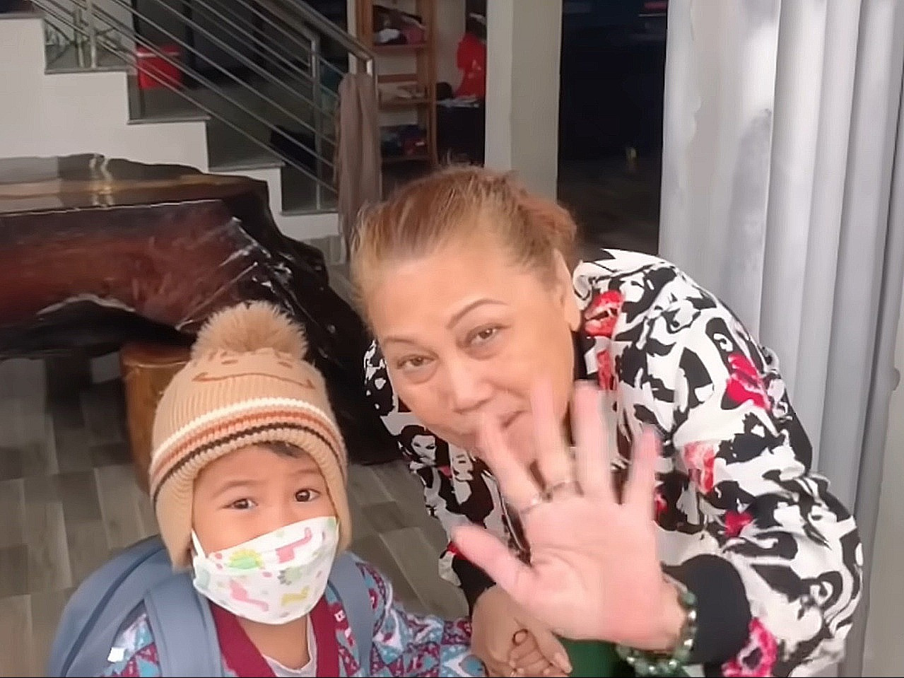 Xong việc, chị đưa bé Tiến - cháu nội đi học. Chăm sóc cháu là niềm vui của Siu Black trong cuộc sống.