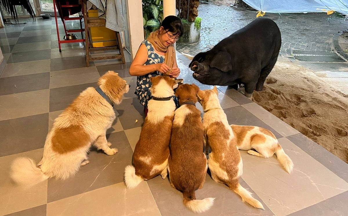 Căn biệt thự rộng rãi của nữ ca sĩ 6x được dùng để nuôi đàn gà, ngỗng, chó, mèo và một chú heo nặng 300 kg với cái tên Joe Đen. Và số lượng vật nuôi này cứ tăng lên theo từng năm.