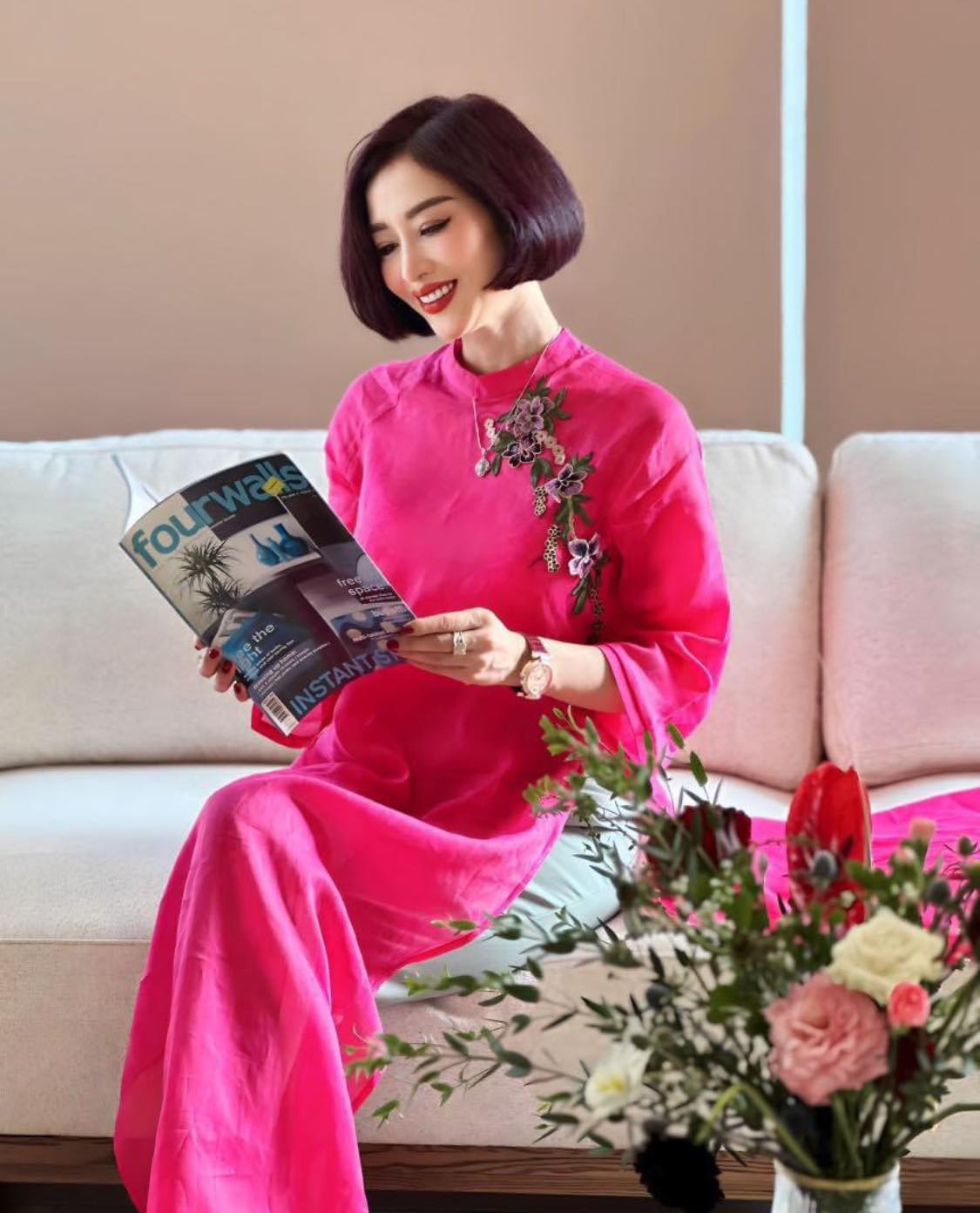 Từ 27- 28 Tết, Thu Hương dành nhiều thời gian trang hoàng cho nhà mới. Cô sắm nhiều hoa đào, hoa mai, tự tay chăm chút từng góc nhỏ trong nhà để gia đình có quãng thời gian nghỉ ngơi thoải mái, thư giãn nhằm tái tạo năng lượng cho những kế hoạch mới trong năm 2024. "Giờ Tết tôi thích thảnh thơi, nghỉ ngơi vì cả năm bận rộn rồi. Tết là thời gian an nhàn, thư thái và có thời gian cho việc tập thể thao, chăm sóc sức khỏe bản thân. Bớt lễ nghi, bớt thủ tục tự nhiên thấy Tết vui và bình an", Thu Hương nói.