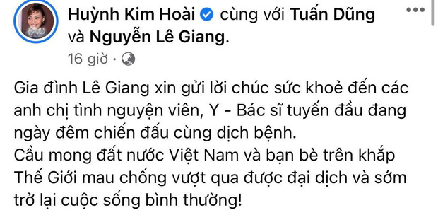 Vào ngày 20/6, trên Facebook cá nhân, Lê Lộc đã đăng clip xuất hiện cùng mẹ Lê Giang và bạn trai tin đồn Tuấn Dũng kèm những lời động viên, cổ vũ tinh thần cho các chiến sĩ chống dịch. Có thể thấy, cả Lê Giang và Lê Lộc đều rất vui vẻ, thoải mái giữa lúc gia đình đang vướng thị phi với NS Duy Phương. Thậm chí, trong status được Lê Lộc đăng tải cũng không hề có chia sẻ nào liên quan đến bố. Về phía Duy Phước, mấy ngày qua anh cũng liên tục cập nhật những hoạt động trong cuộc sống đời thường và không nhắc lại ồn ào với bố ruột.