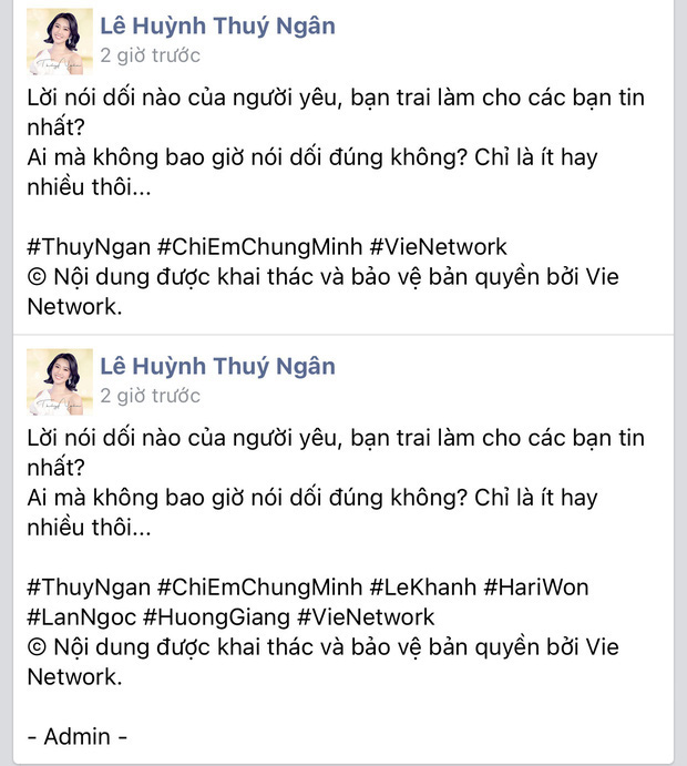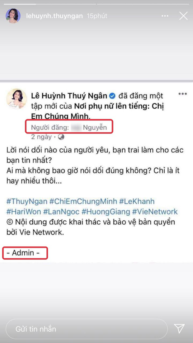 Những ngày qua, chuyện Hương Giang gặp "biến" với antifan thu hút sự chú ý của các "thánh hóng" trên MXH. Đáng nói, giữa lúc làn sóng drama của Hương Giang đang diễn ra, Thúy Ngân bất ngờ bị réo gọi vì 1 chi tiết trong status trên Fanpage. Theo đó, netizen cho rằng Thúy Ngân cố tình xa lánh Hương Giang khi đăng ảnh hội Chị Em Chúng Mình và để hashtag tên tất cả cả thành viên trừ "Nữ hoàng chuyển giới". Sau 2 lần chỉnh sửa, tên Hương Giang mới được bổ sung vào bài viết trên Fanpage của Thúy Ngân.