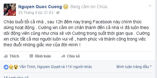 Cho đến ngày 3/5, facebook chính thức của Cường Đô la đã được mở, những tưởng anh sẽ ra mặt nói rõ trắng đen mọi chuyện. Với doanh nhân trẻ này thì người hâm mộ không cần anh phải lên tiếng phanh phui sự thật hay công khai nói rõ tình cảm mà chỉ cần Cường Đô la xác nhận rõ ràng, fanpage kia là thứ giả mạo tên tuổi như trước đây anh đã từng chia sẻ với báo chí. Tuy nhiên, trái với những mong đợi từ công chúng, Cường Đô la vẫn chọn cách lặng thinh. Công chúng yêu mến cặp đôi Cường Đô la và Hạ Vi tỏ ra thất vọng, bởi hành động của thiếu gia phố núi này khiến mọi người vô cùng khó hiểu và làm cho người trong cuộc trở nên chông chênh.