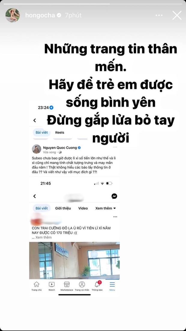 28/01/2023 16:12Cường Đô La, Hồ Ngọc Hà đồng loạt bức xúc trước thông tin quý tử Subeo ủ rũ vì tiền lì xì năm nay chỉ được 170 triệu