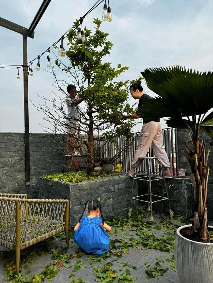 Vào những ngày cận Tết, gia đình Cường Đô La - Đàm Thu Trang đã chủ động trang trí tổ ấm. Nam doanh nhân vui vẻ nói: "Từ ngày lấy vợ thì ngày thảnh thơi nhất trong năm với mình là ngày 30 Tết. Vì tất cả mọi việc vợ chỉ đạo mình làm trước 30 xong hết rồi nên hôm nay thảnh thơi thôi".
