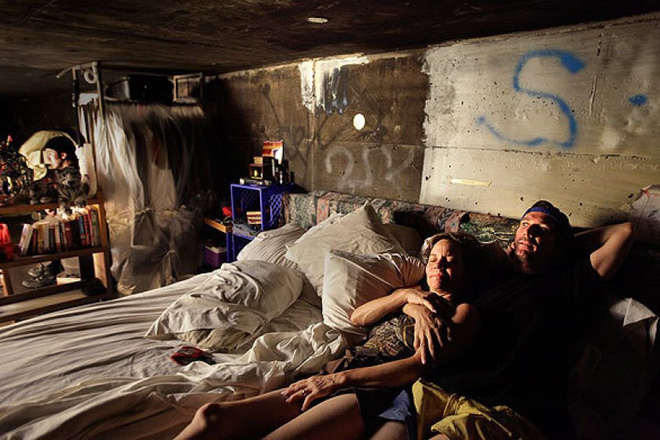Một vài người vô gia cư khác khá giả hơn thì sắm một chiếc giường to và dùng đèn pin để thắp sáng. Những người nghèo khổ hơn thì tìm thức ăn ở thùng rác ngoài hầm và mót xu lẻ của những sòng bạc cạnh đó.