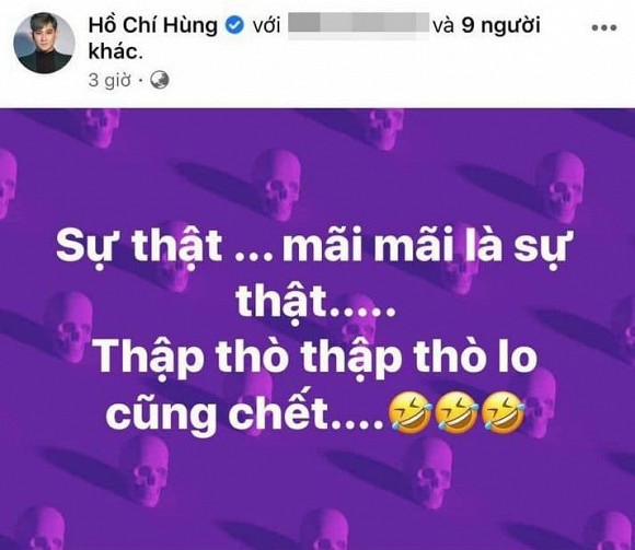 Cụ thể, trên trang cá nhân, Hồ Gia Hùng viết: "Sự thật mãi mãi là sự thật. Thập thò thập thò lo cũng chết". Sau khi được đăng tải, bài viết nhanh chóng nhận được sự quan tâm của cộng đồng mạng. Dù không chia sẻ thêm bất cứ thông tin gì nhưng ai cũng hiểu, bài đăng này của Hồ Gia Hùng là nhắm tới vụ lùm xùm với Nhật Kim Anh và Titi.