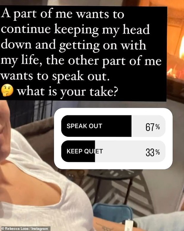 Câu hỏi này được cho là ám chỉ đến vụ việc ngoại tình với Beckham 20 năm trước. Kết quả thăm dò cho thấy 67% trong số 34.400 người theo dõi muốn Rebecca Loos kể ra mọi chuyện, 33% còn lại khuyên cô nên để quá khứ ngủ yên. Sau vụ bê bối với Beckham, Rebecca Loos tiến vào showbiz nhưng không thành công. Tên tuổi cô bị lãng quên cho đến khi bộ phim Beckham được phát hành.