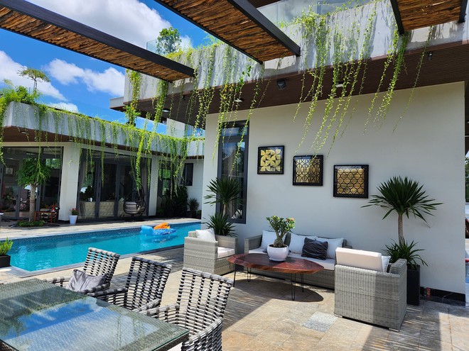 Từ những hình ảnh do Quách Thành Danh đăng tải, biệt thự gồm 3 phần cơ bản: nhà chính, sân trước, vườn sau. Khuôn viên biệt thự có rất nhiều không gian mở, gần gũi với thiên nhiên như vườn cây cảnh và cây ăn quả, bể bơi, hồ cá,... để các con được thoải mái vui chơi.