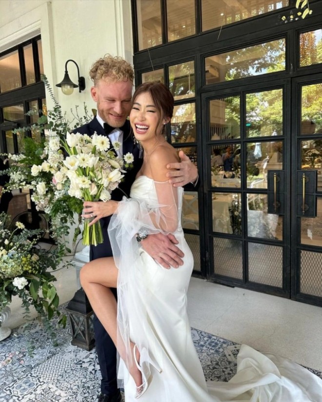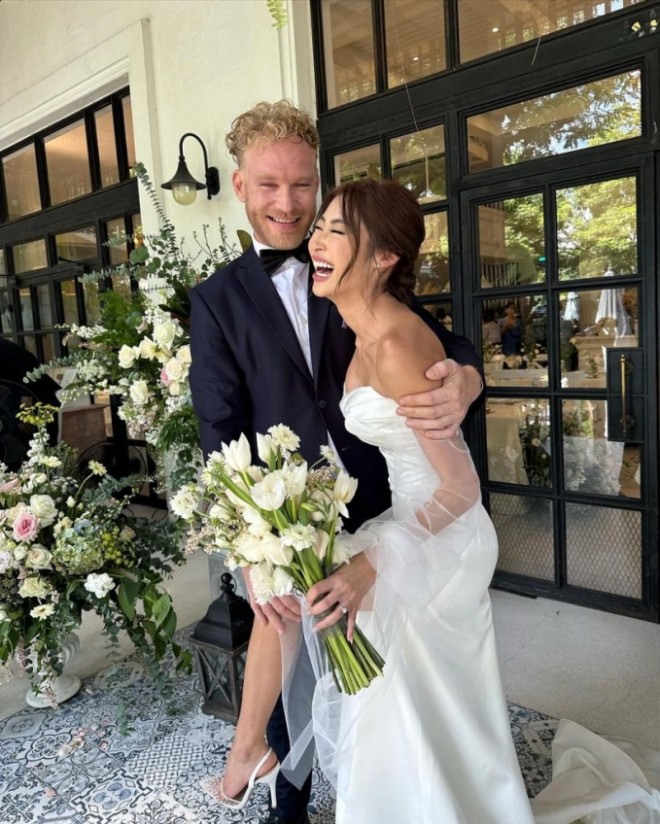 Đứng bên cạnh Gypsy, ông xã ngoại quốc Nicolas trông điển trai trong bộ vest đen lịch lãm. Suốt buổi lễ, cả hai không giấu nổi nụ cười hạnh phúc. Cặp đôi cũng nhiệt tình chụp ảnh kỷ niệm cùng các khách mời. Trên trang cá nhân của nữ diễn viên, đông đảo bạn bè, đồng nghiệp và người hâm mộ đã gửi lời chúc mừng đến cô.