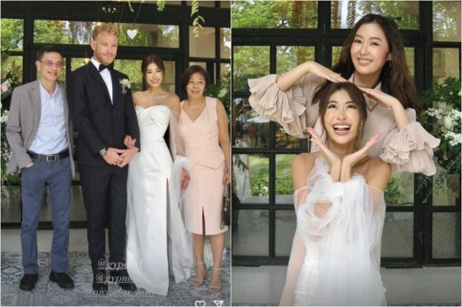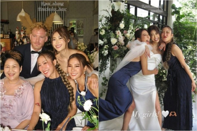 Trong loạt ảnh cưới, khán giả còn thấy sự xuất hiện của bố mẹ và em gái của nữ diễn viên - Gypso Ramita trong ngày trọng đại của cô. Tất cả đều nâng ly chúc mừng hạnh phúc của "ác nữ" nổi tiếng của showbiz Thái.