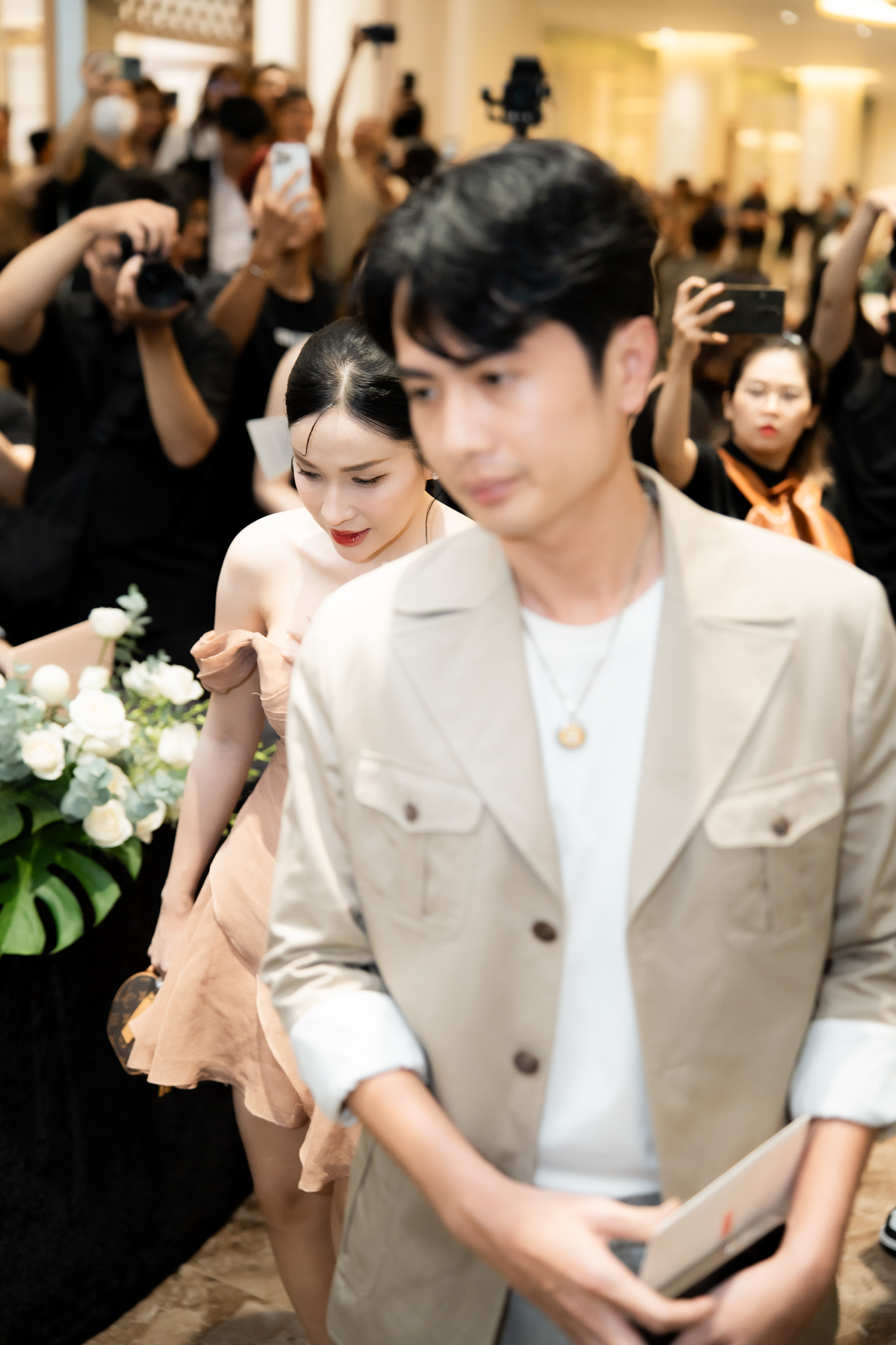 Tối 10/9, diễn viên Anh Đức và Anh Phạm tổ chức hôn lễ chiêu đãi dàn sao Việt, bạn bè. Theo cặp đôi chia sẻ, hôn lễ có khoảng 800 khách mời, bao gồm gia đình 2 bên và đồng nghiệp trong showbiz. Cặp đôi đầu tư cho khâu trang trí khi dùng hoàn toàn hoa tươi, phủ kín các lối đi và sảnh tiệc để khách mời thoải mái "sống ảo". Theo ghi nhận, sát giờ diễn ra hôn lễ thì tại TP.HCM có xuất hiện mưa to, vì thế nhiều khách mời đến muộn, vội vã vào bên trong để chứng kiến khoảnh khắc trọng đại của cặp đôi.