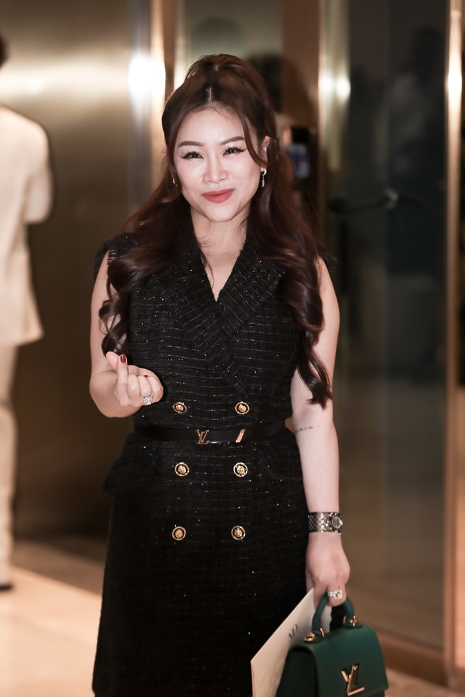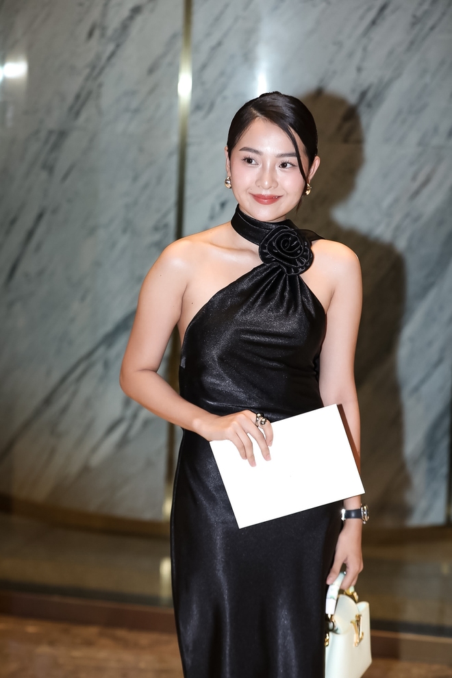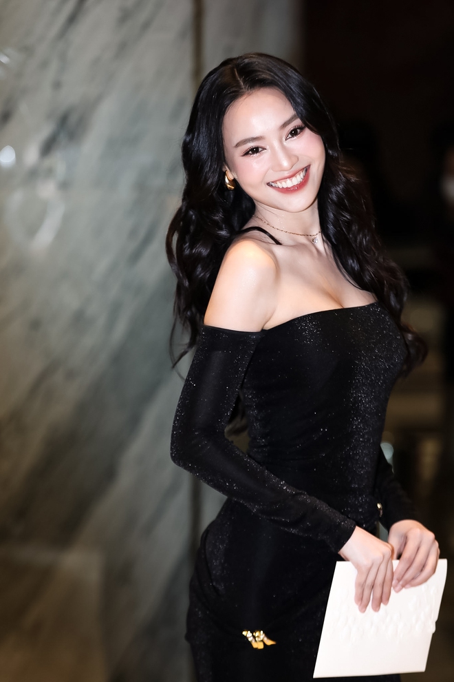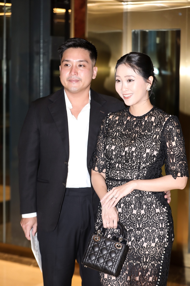 Gây chú ý chính là sự xuất hiện bất ngờ của Ninh Dương Lan Ngọc. "Ngọc nữ màn ảnh Việt" đã bí mật về nước để dự đám cưới Midu. Lan Ngọc chọn bộ trang phục đen ôm body, nhí nhảnh pose dáng trước ống kính truyền thông. Góp mặt trong ngày vui đồng nghiệp, Nhã Phương được Trường Giang hộ tống. Đôi vợ chồng đình đám Vbiz ăn diện ton-sur-ton, khoác ptay tình tứ khi đến buổi tiệc. Trong khi đó Lan Khuê - Quốc Trường lên đồ thanh lịch khi dự đám cưới. Còn Mai Phương Thúy xuất hiện khá hối hả, cô không chụp hình ở sảnh mà di chuyển nhanh vào bên trong buổi tiệc.
