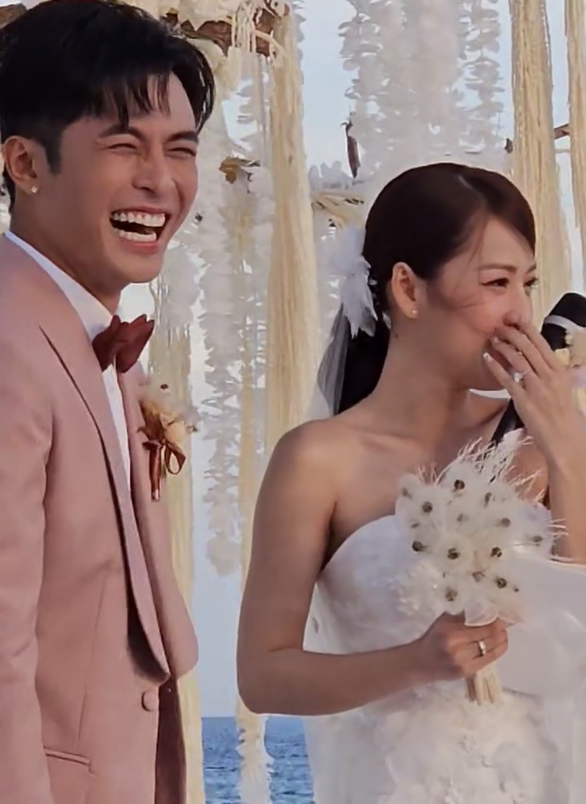Puka không thể giấu sự xúc động trong ngày trọng đại. Nữ diễn viên bật khóc khi tiến vào lễ đường khiến chú rể ôm chặt vỗ về. Khoảnh khắc cặp đôi trao nhau nụ hôn trên sân khấu, trước sự chứng kiến của gia đình, bạn bè thân thiết khiến khách mời cũng hạnh phúc lây.
