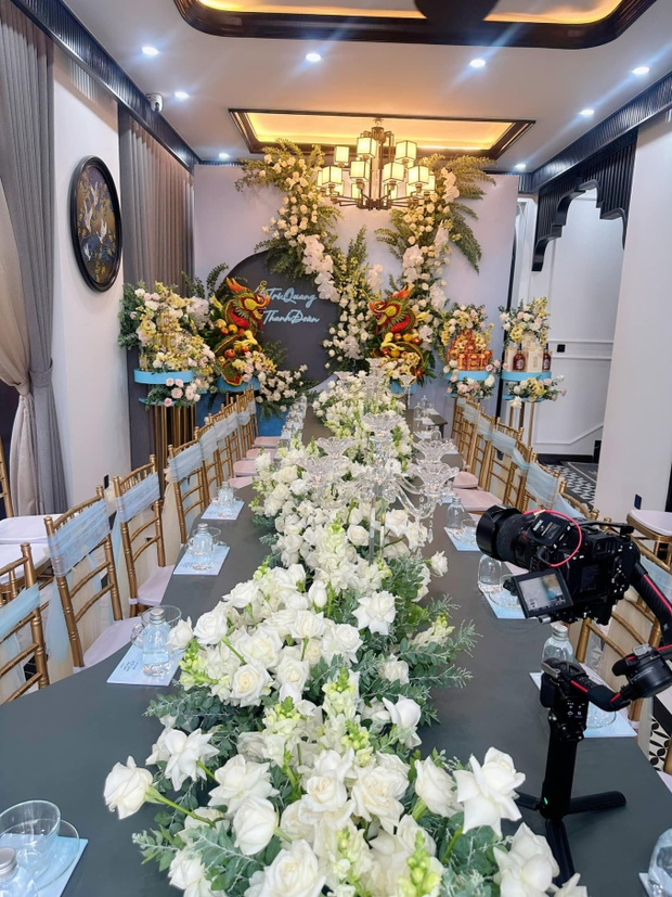 Tại Đồng Tháp, vợ chồng Hồ Bích Trăm đã có mặt từ sớm để cùng Thanh Đoàn chuẩn bị những khâu cuối cùng cho lễ ăn hỏi. Thanh Đoàn tiết lộ đã chuẩn bị 2 tấn hoa tươi, tương đương với hàng triệu bông hồng để trang trí từ lối vào đến phòng gia tiên ở biệt thự 3000m2. Trước cổng có đôi rồng được đính kết thủ công, thay cho hình ảnh long - phụng như các đám cưới khác. Nhìn vào 2 cơ ngơi của Hà Trí Quang và Thanh Đoàn, cư dân mạng phải choáng ngợp vì quá xịn xò. Sau đám hỏi này, cặp đôi sẽ tổ chức lễ cưới vào năm 2024.