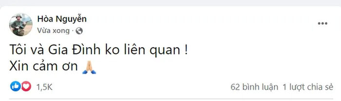 Lúc này, dân tình bắt đầu đổ dồn sự chú ý về phía Hòa Minzy khi cho rằng có thể nữ ca sĩ chính là người bị đàn em giật chồng. Nhanh chóng sau đó, Hòa Minzy đã lên tiếng đính chính cho biết: "Tôi và gia đình không liên quan. Xin cảm ơn".