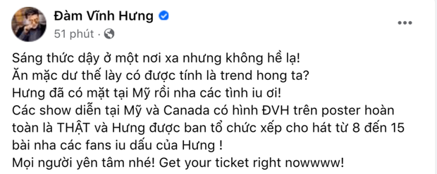 11/11/2021 15:43Đàm Vĩnh Hưng bất ngờ khoe ảnh check-in tại Mỹ sau tin đồn bị cấm nhập cảnh, chuyện gì đây?