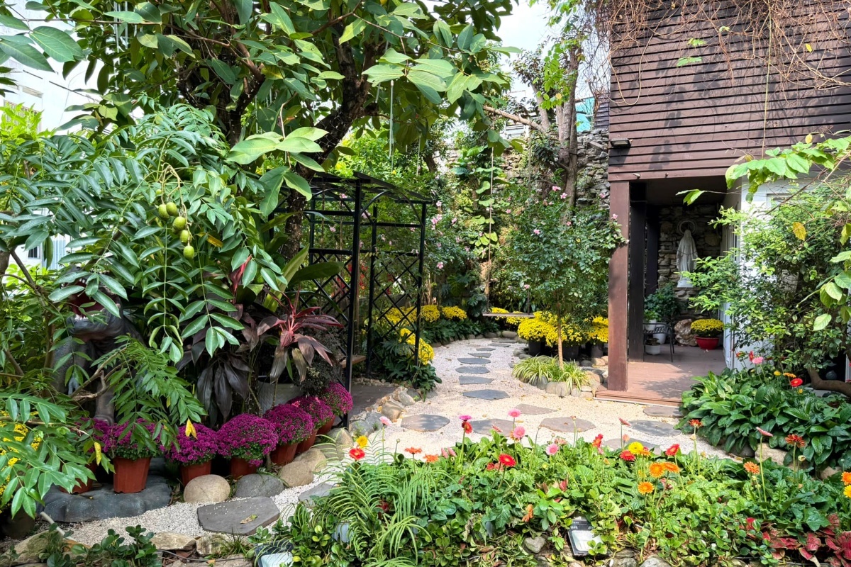 Biệt thự có vườn trồng nhiều hoa và cây ăn trái. Mỗi khi có dịp qua Mỹ, anh thường tự tay nhổ cỏ, chăm sóc cây và hoa. Nam ca sĩ cho biết đã nhờ 1 người thân bên Mỹ chăm sóc biệt thự này.