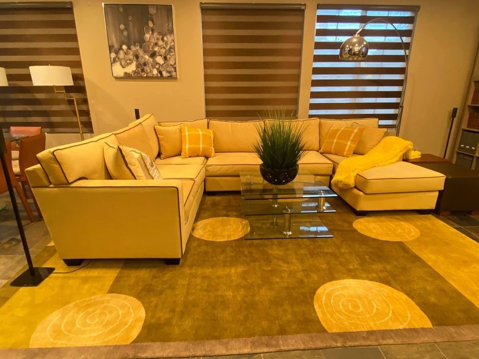 Tông màu chủ đạo bên trong gồm trắng, vàng... Nội thất được kết hợp hài hòa tạo nên vẻ sang trọng, tinh tế của không gian ở. Phòng khách được đặt 1 sofa đôi rộng lớn. Nam ca sĩ thiết kế không gian mở, kế bên phòng khách còn có bàn ăn nhỏ.