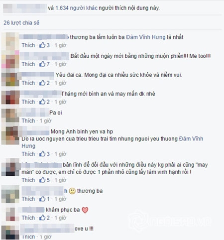Ngay sau khi đăng tải, dòng tâm sự của Đàm Vĩnh Hưng nhận được rất nhiều sự quan tâm của công chúng. Ai nấy đều đồng cảm và chia sẻ nỗi niềm với Đàm Vĩnh Hưng cũng như dành nhiều lời động viên, an ủi tinh thần anh.
