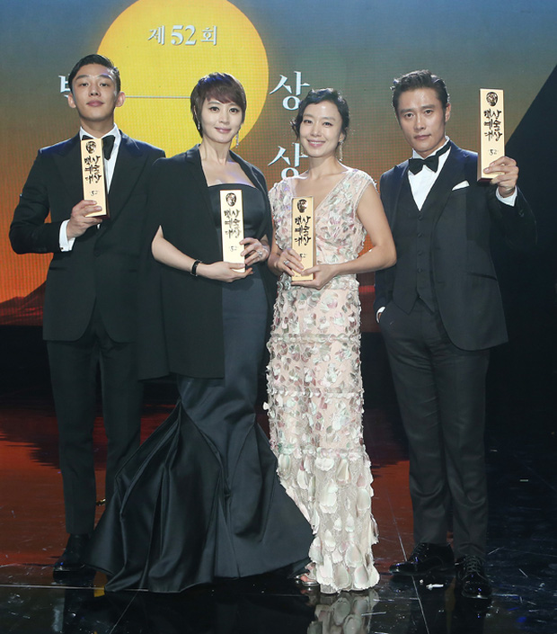 Tại Baeksang 2016, các ngôi sao thắng giải ở lại chụp hình lưu niệm. Trong hình có Lee Byung Hun, Jeon Do Yeon, Kim Hye Soo, Yoo Ah In còn Song Hye Kyo dù giành được 1 giải quan trọng nhưng lại không thấy tăm hơi. Netizen suy đoán rằng, Song Hye Kyo muốn tránh mặt tình cũ