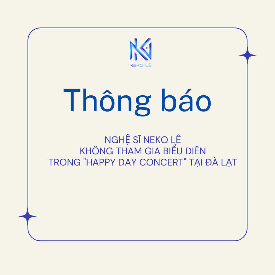 Happy Day Concert 2025 sau khi công bố dàn line-up khủng, dự kiến sẽ diễn ra vào ngày 7 - 8/3. Địa điểm tổ chức là sân vận động Đà Lạt, tọa lạc trên hẻm Xô Viết Nghệ Tĩnh, phường 7, thành phố Đà Lạt, tỉnh Lâm Đồng. Dàn line-up được giới thiệu gồm loạt Anh Trai - Chị Đẹp như Neko Lê, BB Trần, Thiều Bảo Trâm, Trang Pháp, Minh Hằng, B Ray, Quân A.P, Anh Tú Atus…. Sự kiện hứa hẹn sẽ đem đến 1 không gian âm nhạc nơi người hâm mộ có thể hòa mình vào những màn trình diễn bùng nổ.