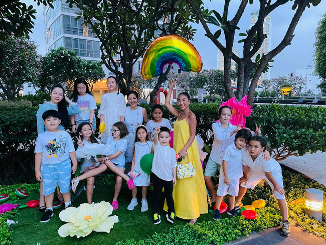 Không chỉ các bé có buổi gặp mặt, vui chơi thỏa thích cùng nhau trong tiệc sinh nhật của Tôm - Tép mà các bà mẹ nổi tiếng cũng rất vui vẻ khi được tụ tập với nhau. Đoan Trang, Hồng Nhung, Hà Kiều Anh, Linh Nga là hội chị em thân thiết lâu năm, chính vì thế các mỹ nhân Vbiz này cũng muốn tạo điều kiện để kết nối các con, xây dựng sự thân thiết hơn giữa các gia đình.