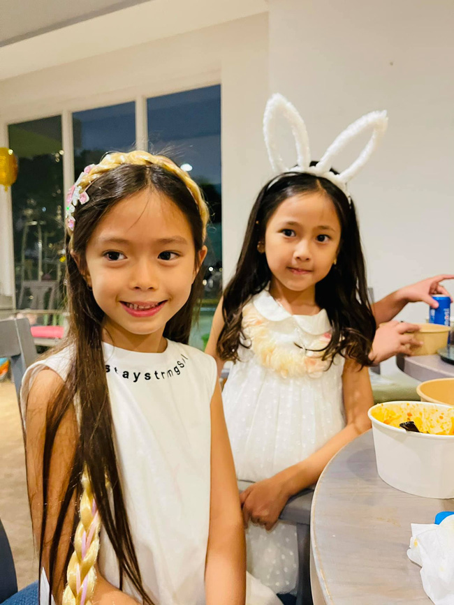 Đặc biệt, tiệc sinh nhật của hai nhóc tỳ Tôm - Tép nhà Hồng Nhung còn có sự xuất hiện của bé Sol - con gái Đoan Trang. Các bé đều là những người bạn thân, thường xuyên gặp gỡ nhau trong các cuộc tụ họp của bố mẹ.