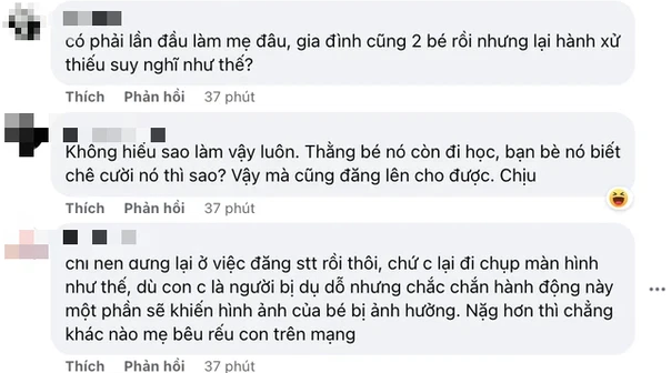 Tuy vậy, điều đa số dâng mạng không đồng tình là việc chị chia sẻ ảnh chụp nhóm chat mà con mình tham gia, bao gồm cả hình ảnh nhạy cảm ở phần bình luận bài đăng trên Facebook.