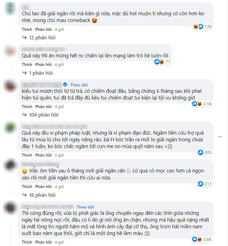 Tiếp đó, nam nghệ sĩ nhanh chóng giải ngân toàn bộ số tiền quyên góp trong vòng 1 tuần và khẳng định "không làm mẻ một đồng nào của công chúng".