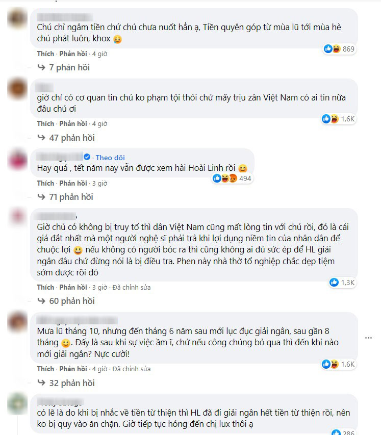 Tháng 5/2021, NSƯT Hoài Linh bất ngờ vướng lùm xùm chậm trễ giải ngân 14 tỷ tiền từ thiện miền Trung khi kêu gọi quyên góp từ tháng 10/2020 nhưng mãi 6 tháng sau vẫn chưa trao số tiền này đến nơi cần được giúp đỡ.