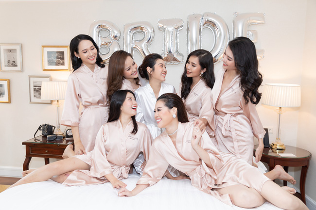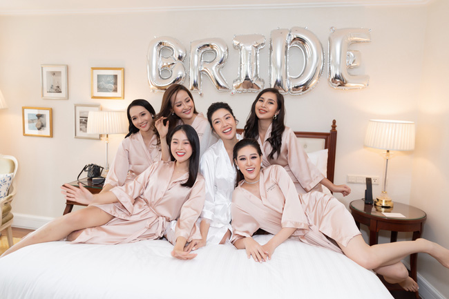 Lúc này, cô dâu đã sẵn sàng để xuất hiện xinh đẹp lộng lẫy trên lễ đường. Thúy Vân cũng vừa đăng tải những hình ảnh xinh đẹp bên dàn phù dâu toàn mỹ nhân. Bên cạnh Hoa hậu Hoàn vũ Việt Nam 2019 Khánh Vân và Hoa hậu Hoàn cầu 2017 Khánh Ngân thì Á hậu Thùy Dung, diễn viên Tam Triều Dâng, người mẫu Kim Ngân... sẽ là phù dâu cho Thúy Vân.