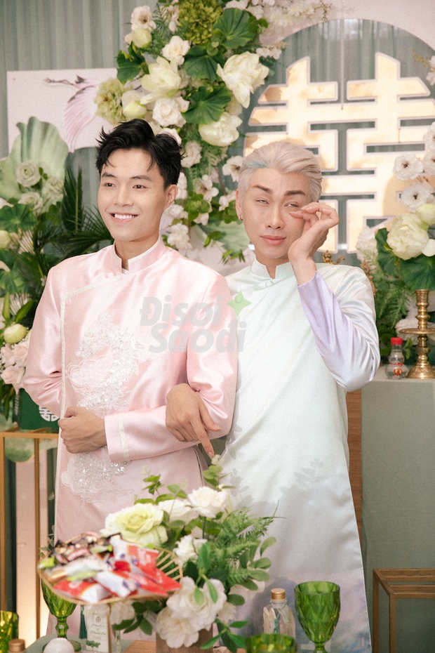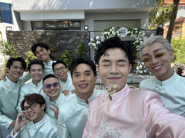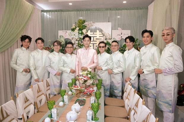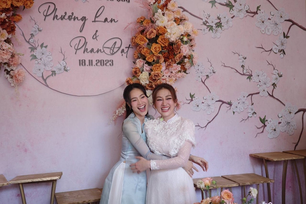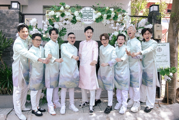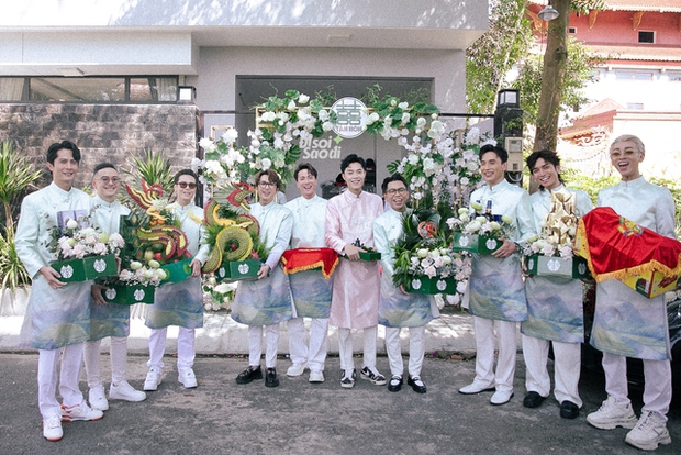 Dàn bê tráp trong buổi lễ cũng gây chú ý vì toàn sao Việt. Phía đàng trai quy tụ dàn nghệ sĩ đình đám của Vbiz như Thuận Nguyễn, BB Trần, Hải Triều, Minh Dự, S.T Sơn Thạch, Huỳnh Phương... Bên đàng gái cũng rần rần không kém với sự góp mặt của Thùy Anh, Uyển Ân, Misthy... Các nghệ sĩ đều diện áo dài xanh nền nã, có mặt đông đủ để chuẩn bị các nghi lễ và chung vui với Phương Lan - Phan Đạt.