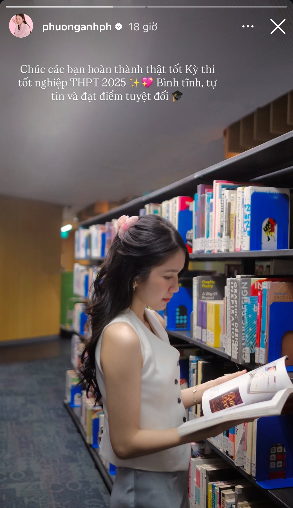 Không chỉ Quốc Anh, nàng loạt nàng hậu, sao Việt cũng gửi lời động viên, tiếp thêm năng lượng cho các sĩ tử trong kỳ thi đặc biệt quan trọng này. Dàn Hậu thi nhau tung ảnh hiếm lúc còn đi học, đăng tải những dòng trạng thái tích cực, khích lệ tinh thần, thậm chí còn chia sẻ lại trải nghiệm thi cử của chính mình để tiếp thêm động lực cho các bạn trẻ.