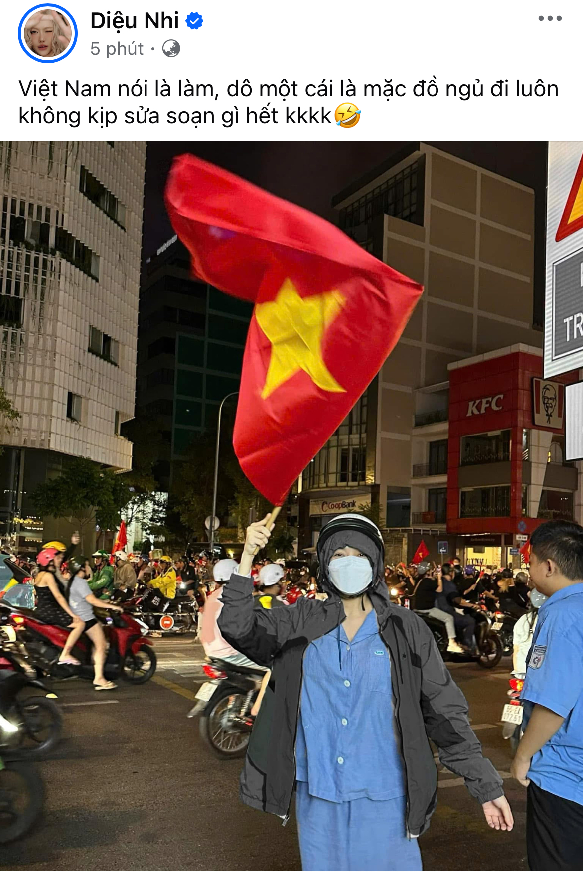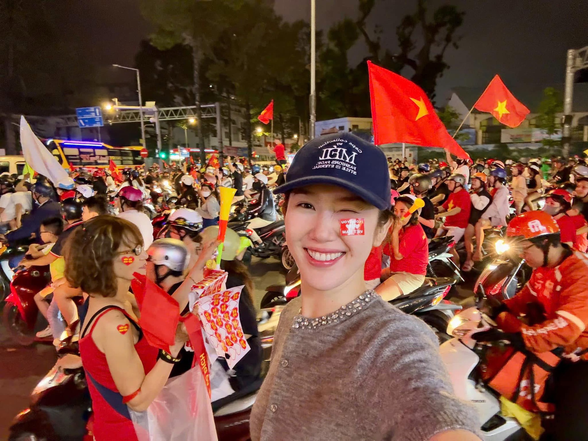 Giữ đúng lời hứa, Diệu Nhi diện luôn cả đồ bộ xuống đường, Diệp Lâm Anh tự lái xe máy đi ăn mừng. Đặc biệt, "ngọc nữ" Hà Tăng cũng thể hiện niềm tự hào Việt Nam khi đăng tải một đoạn clip ghi lại khung cảnh người ra đổ ra các nẻo đường để reo hò phấn khích.