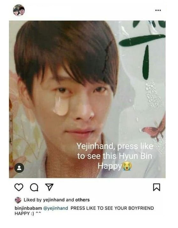Là cặp đôi được quan tâm nhất showbiz Hàn thời điểm hiện tại, nhất cử nhất động của Son Ye Jin và Hyun Bin đều nhận được sự chú ý rất lớn của công chúng. Mới đây, mỹ nhân họ Son vừa khiến dân tình thích thú khi "like dạo" một loạt ảnh chế vui nhộn của bạn trai. Dường như sau khi công khai hẹn hò, người đẹp vốn nổi tiếng kín tiếng này đã thoải mái hơn trong việc thể hiện tình cảm với "nửa kia" của mình.