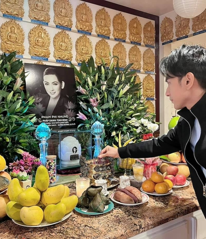 Hiện tro cốt Phi Nhung đặt ở tịnh xá Giác An để bạn bè, khán giả có thể đến thăm, tưởng nhớ. Wendy Phạm - con gái duy nhất của cố nghệ sĩ - hàng ngày lên tịnh xá sắp xếp bàn thờ, cầu nguyện cho mẹ sớm. Cô thấy vui vì ngày nào mẹ cũng có người đến thăm, mua nhiều món ngon dâng cúng. Trong đó, có khoai lang luộc là món Phi Nhung yêu thích lúc sinh thời. Ngoài ra, Wendy hàng tuần lo việc cúng kiếng đến đủ 49 ngày.
